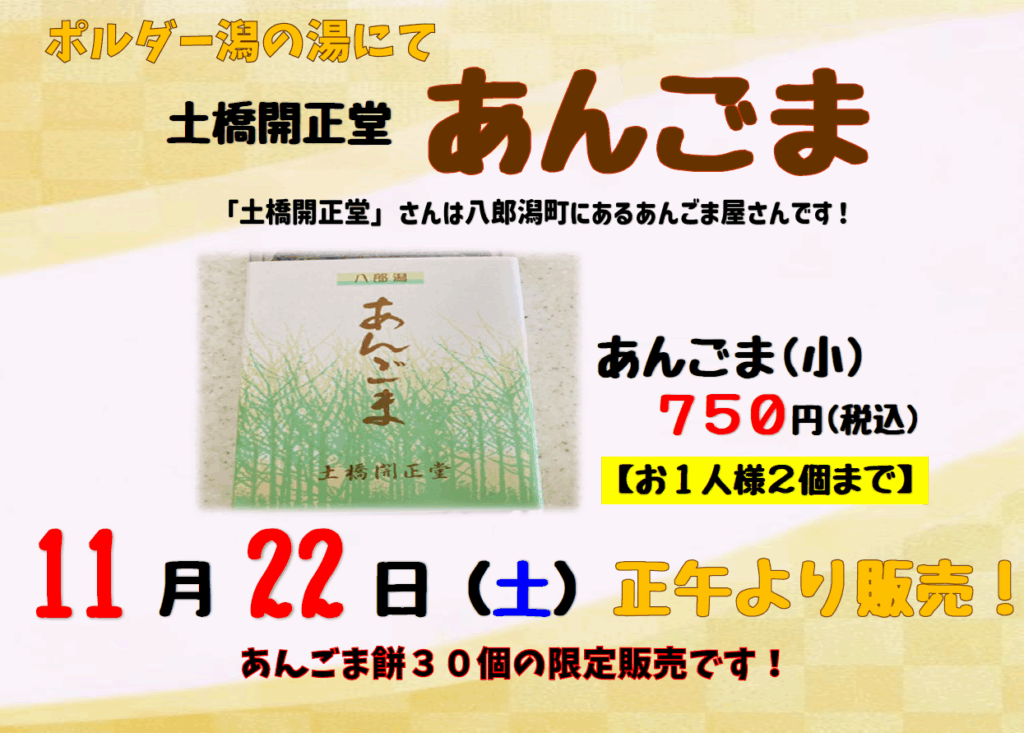 ポルダー潟の湯にて「土橋開正堂」さんのあんごま販売いたします😋