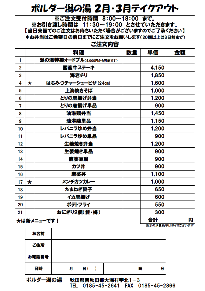 ↓ 2月・3月のテイクアウトです ↓
