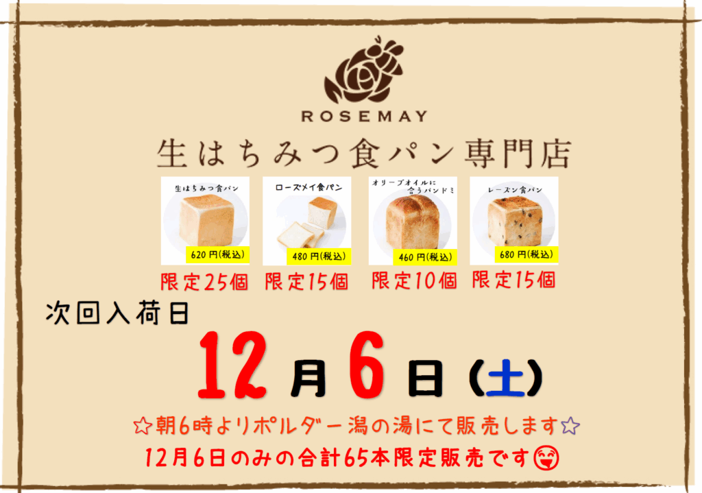 生はちみつ食パン専門店 ROSE MAY (ローズメイ) さんの生食パン 販売します!!!